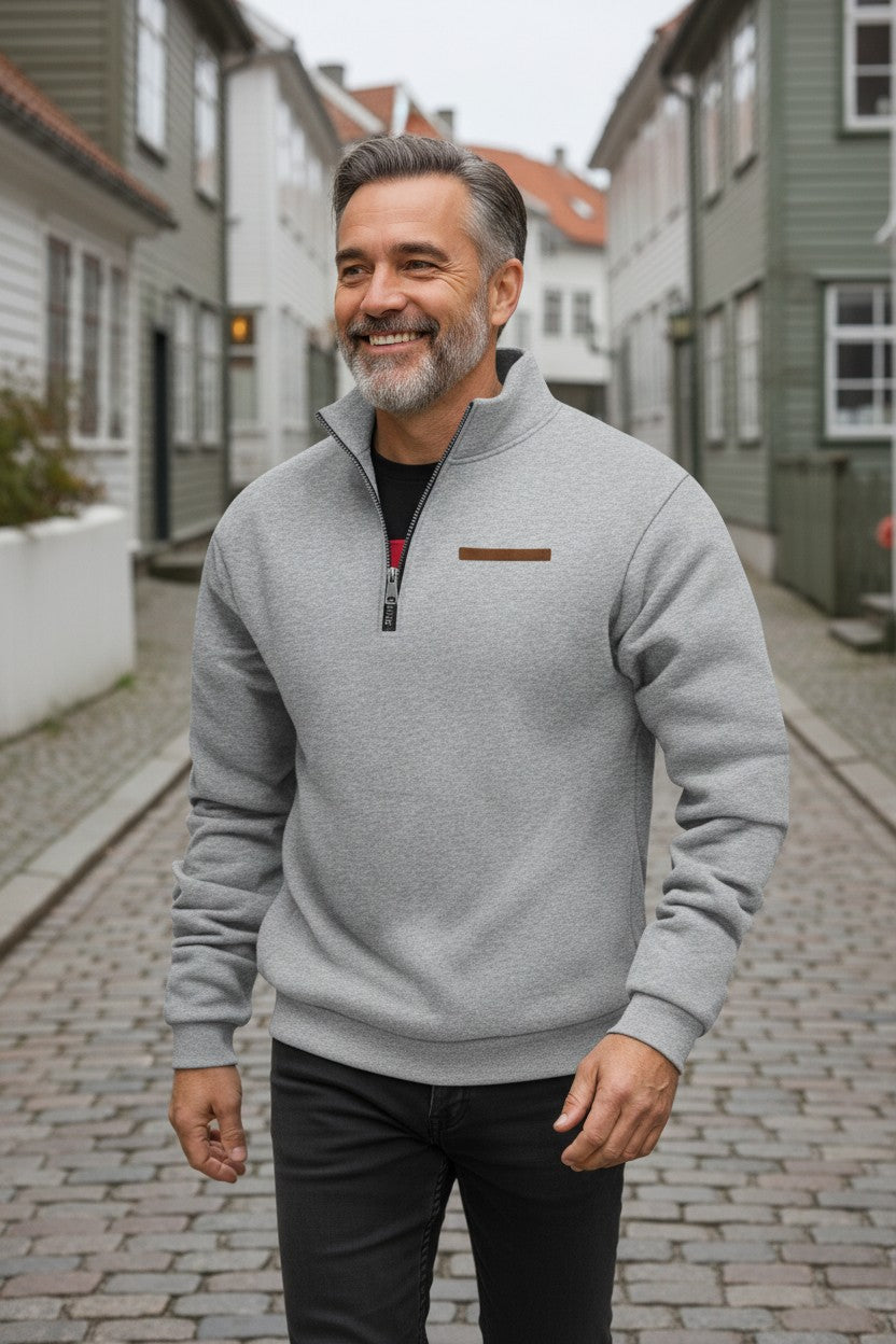 Adrien | Fleece-genser for menn kombinerer varme, stil og maksimal komfort. Den førsteklasses fleecen føles ekstra myk mot huden. Den avslappede passformen gjør den perfekt både til rolige dager hjemme og til hverdagslige antrekk ute. Et pålitelig basisplagg du vil bruke året rundt.